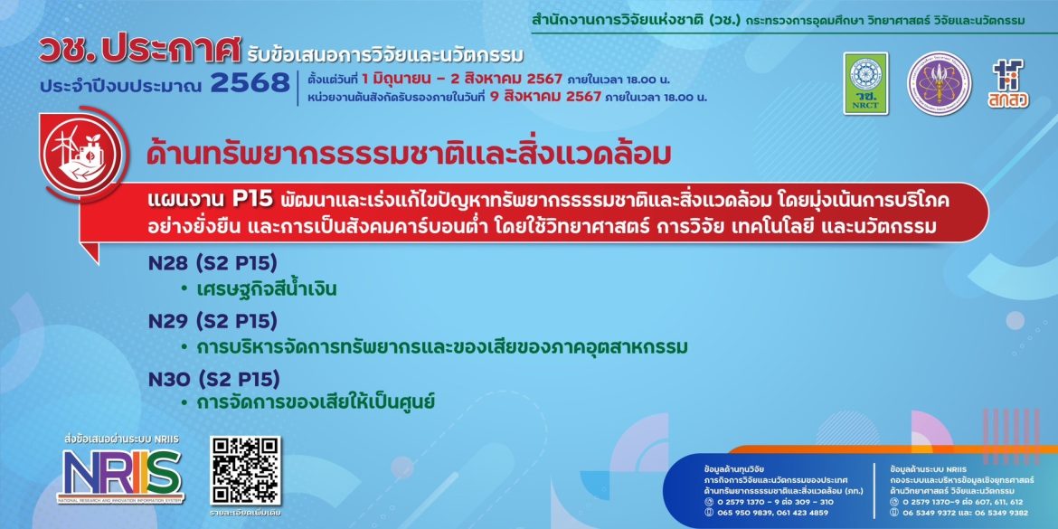 วช. ประกาศรับข้อเสนอการวิจัยและนวัตกรรม ประจำปีงบประมาณ 2568 (ด้านทรัพยากรธรรมชาติและสิ่งแวดล้อม